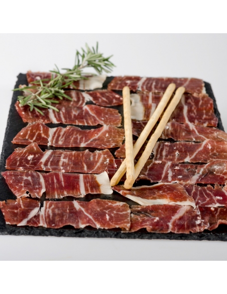 El corte a cuchillo y el cuidado en su envasado garantiza la total conservación de las principales características del jamón de Guijuelo. Un jamón de caña fina, heredero de los sabores y de la tradición de un entorno tan emblemático y respetado, como certifica su Consejo Regulador.